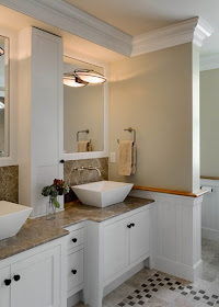 When I happened upon this fantastic vacation home on Lake Winnipesaukee I just HAD to share. Mainly because I love every last detail of this warm and inviting home but also because our family has an unusual fondness for the movie, 'What About Bob?'. Actually, Dr. Marvin & Faye's fictional vacation home is reminiscent of the home you see below. Designed by TMS Architects, this beautiful home, AKA Lighthouse Cove Cottage, is within walking distance of downtown Wolfeboro, NH. Located on a gentle rolling hill, it looks out easterly across Lake Winnipesaukee. The cottage sits on a New Hampshire fieldstone base with the entire back of the home covered with glorious picture windows. The cottage's unique wall of windows opens up this home and allows for an unobstructed panoramic view of the yard and lake beyond. TMS Architecs' generous use of exterior decks allow the homeowners easy access to the small beach, fire pit and dock which are located at the water's edge. Embracing all of today's modern technologies and innovative construction techniques, TMS's Lighthouse Cove Cottage still respects the historic heritage of Lake Winnipesaukee's past in today's world. I could be happy here, how 'bout you?